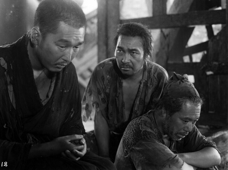 В руинах древних ворот Расёмон от проливного дождя прячутся возвращающийся из города лесоруб и странствующий монах. Вскоре к ним присоединяется проходящий мимо крестьянин. Чтобы скоротать время, первый рассказывает случайным слушателям о том, как он был в суде, где слушалось дело об убийстве знатного самурая Канадзавы и изнасиловании его супруги Масако. Он был случайным свидетелем нападения разбойника на путешествующую чету, который, польстившись на богато украшенное оружие, решил убить мужчину и овладеть его женой. Бандиту удается связать воина, после чего на глазах мужа он насилует его супругу. Женщина, пытаясь избежать позора то просит чужака взять ее с собой, то требует убить мужа, предлагая свой личный кинжал. Наконец мужчины устраивают поединок, и более ловкий Тадзомару случайно убивает самурая и забирает его меч. Женщина убегает, уронив на землю дорогой кинжал.